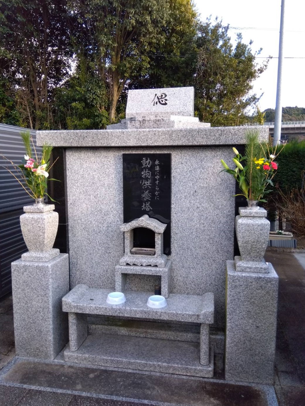 動物供養塔もお正月らしく、お花が飾られておりました。