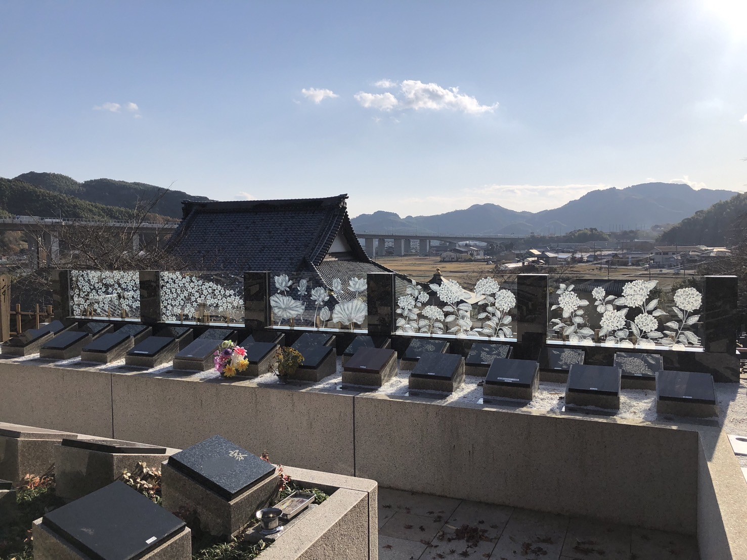 葉梨の里霊園は1月5日に営業を始めましたが、年末年始中もお参りに来られた方も多かったようで、色鮮やかな供花で華やいでおりました^^